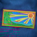 Hand-tooled/ hand-stitched flap pouch (8" x 4"), hand-carved and painted. 6-8oz Veg-Tan leather.