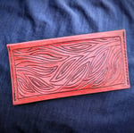Hand-tooled/ hand-stitched flap pouch (8" x 4"), hand-dyed in Fiery Red. 6-8oz Veg-Tan leather.